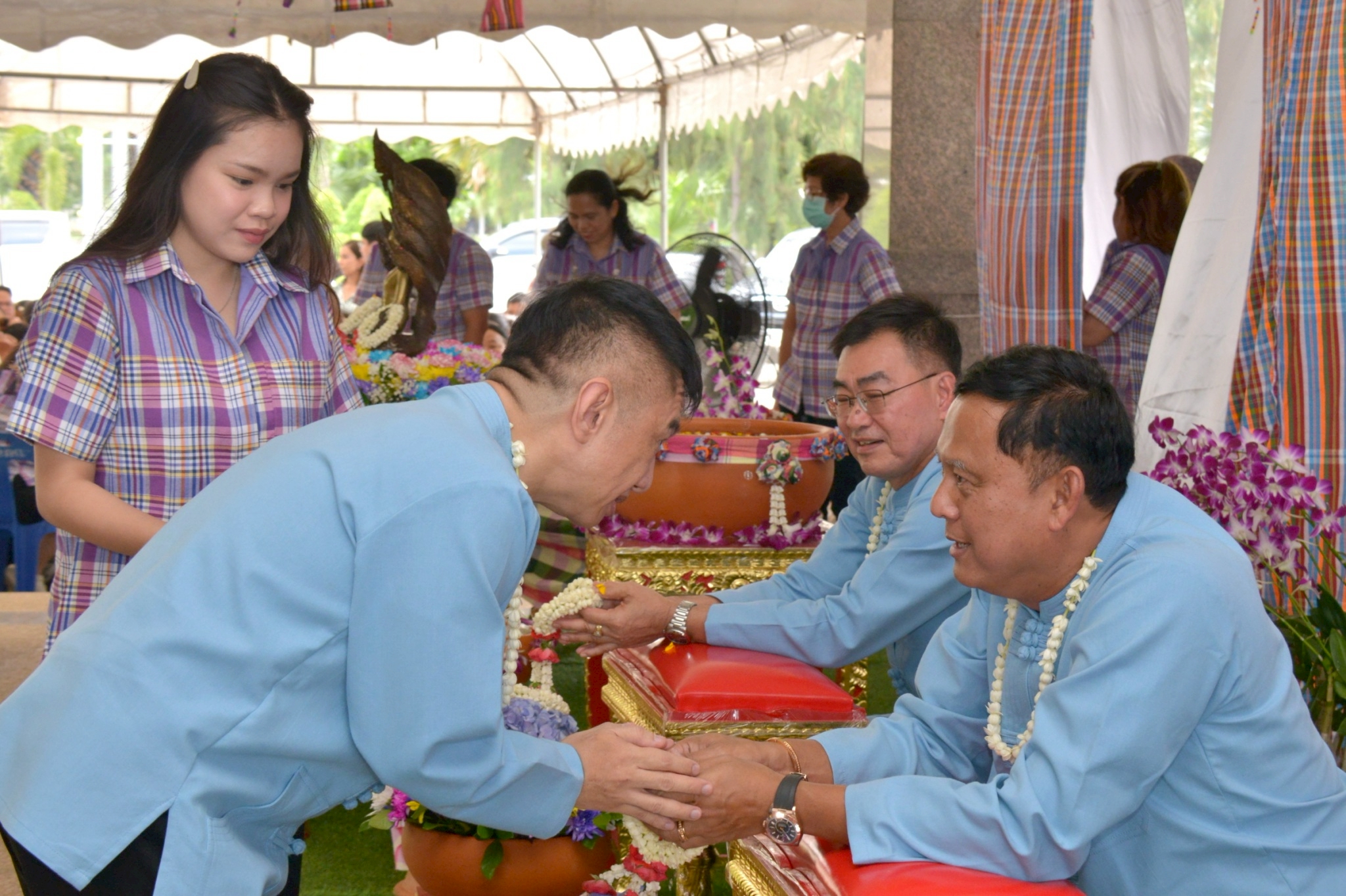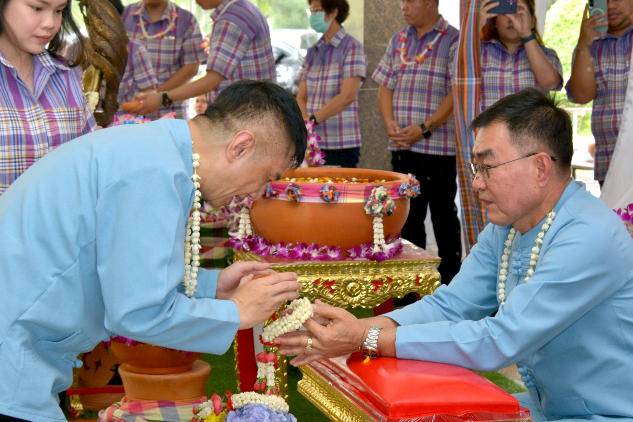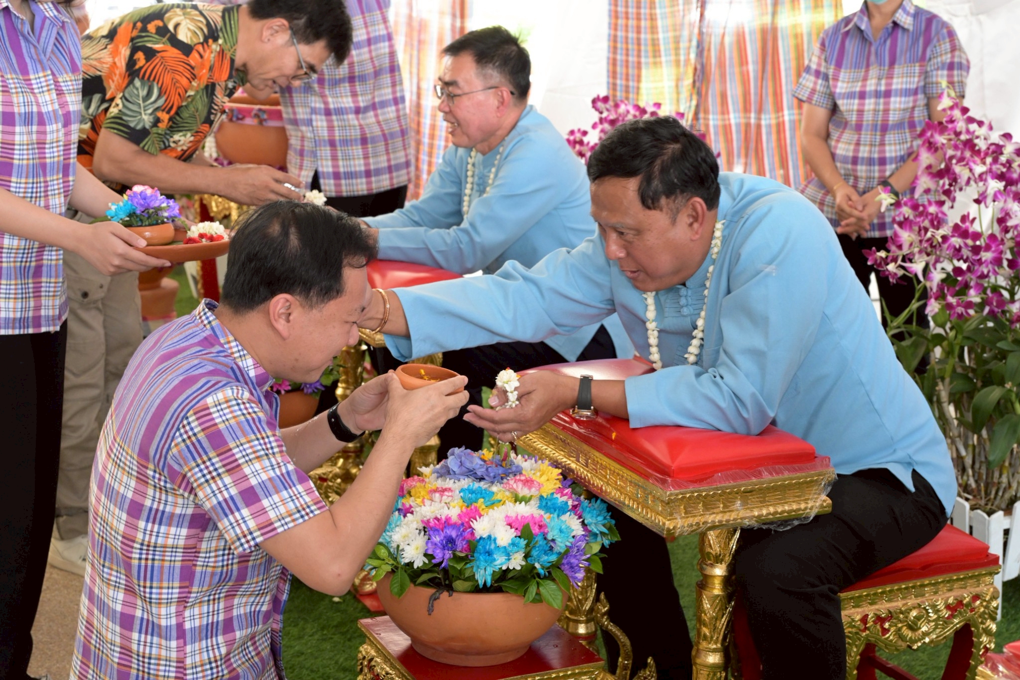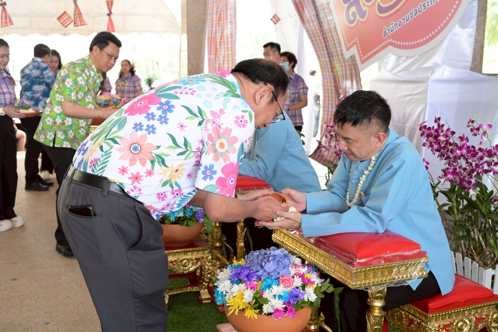 หลังจากนั้น ผู้อำนวยการส่วน ผู้อำนวยการโครงการ หัวหน้าฝ่าย และเจ้าหน้าที่ของสำนักงานชลประทานที่ 11 ร่วมรดน้ำขอพรเนื่องในวันประเพณีไทยวันสงกรานต์ (วันปีใหม่ไทย) จากนายพงศ์ศักดิ์ อรุณวิจิตรสกุล ที่ปรึกษาด้านบริหารจัดการน้ำ สำนักงานชลประทานที่ 11 นายชุติมันต์ สกุลพราหมณ์ ผู้อำนวยการสำนักงานชลประทานที่ 11 และ ดร.นพดล โค้วสุวรรณ์ รองผู้อำนวยการสำนักงานชลประทานที่ 11
