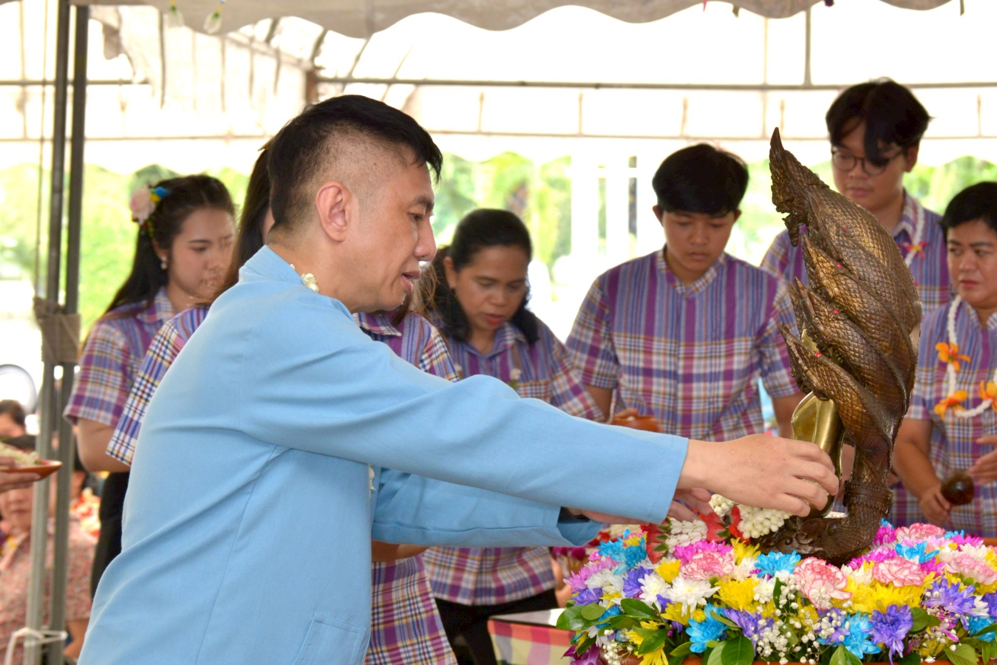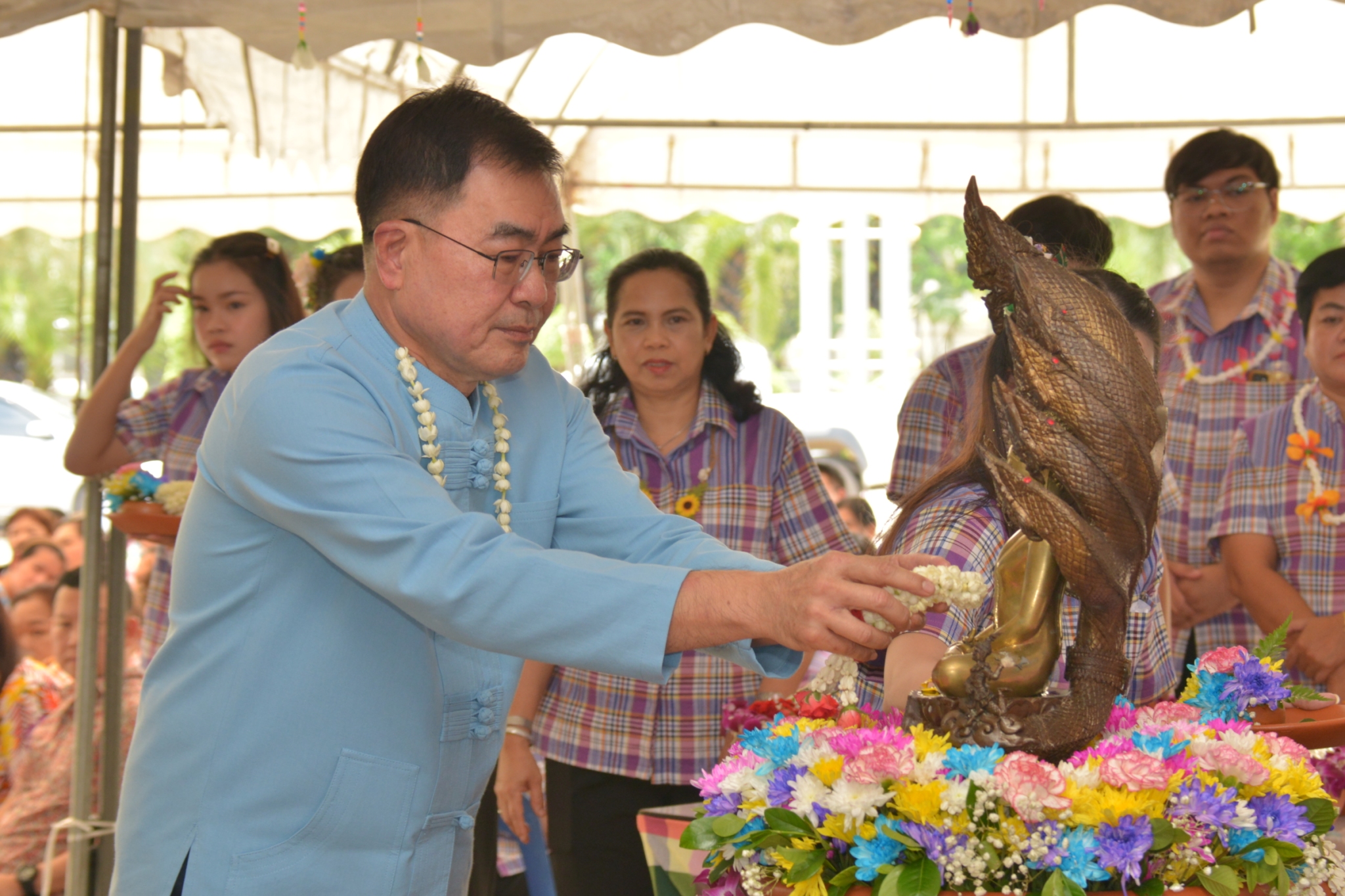 วันที่ 21 เมษายน 2568 สำนักงานชลประทานที่ 11 สืบสานประเพณีไทยวันสงกรานต์ (วันปีใหม่ไทย) ผู้บริหารของสำนักงานชลประทานที่ 11 ร่วมสรงน้ำพระพุทธสุวรรณรังสีนฤมิตร พระประจำสำนักงานชลประทานที่ 11 เพื่อความเป็นสิริมงคลแก่ชีวิต