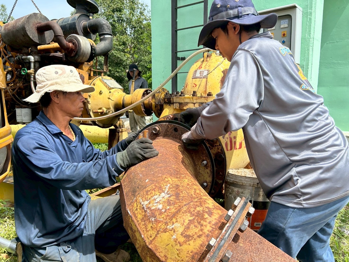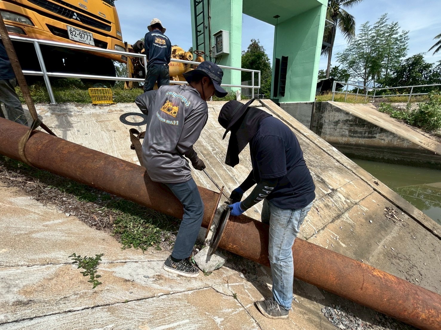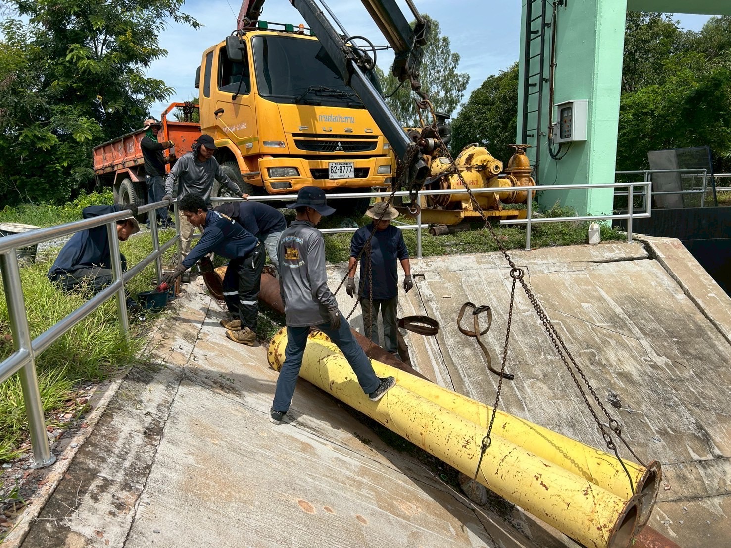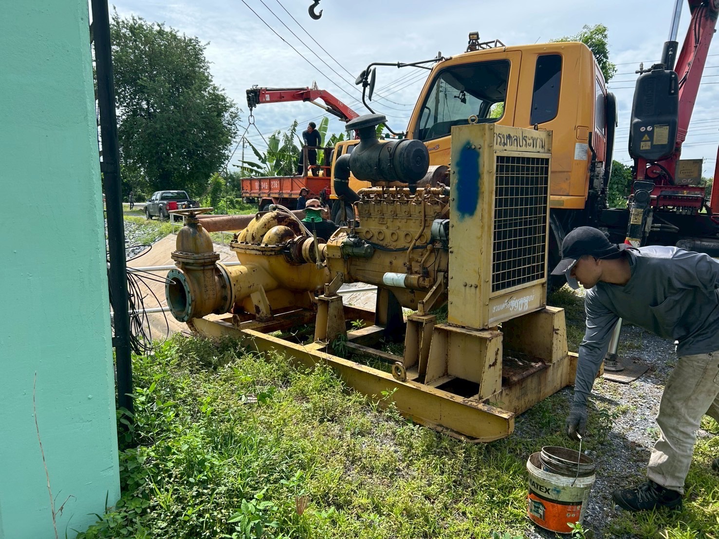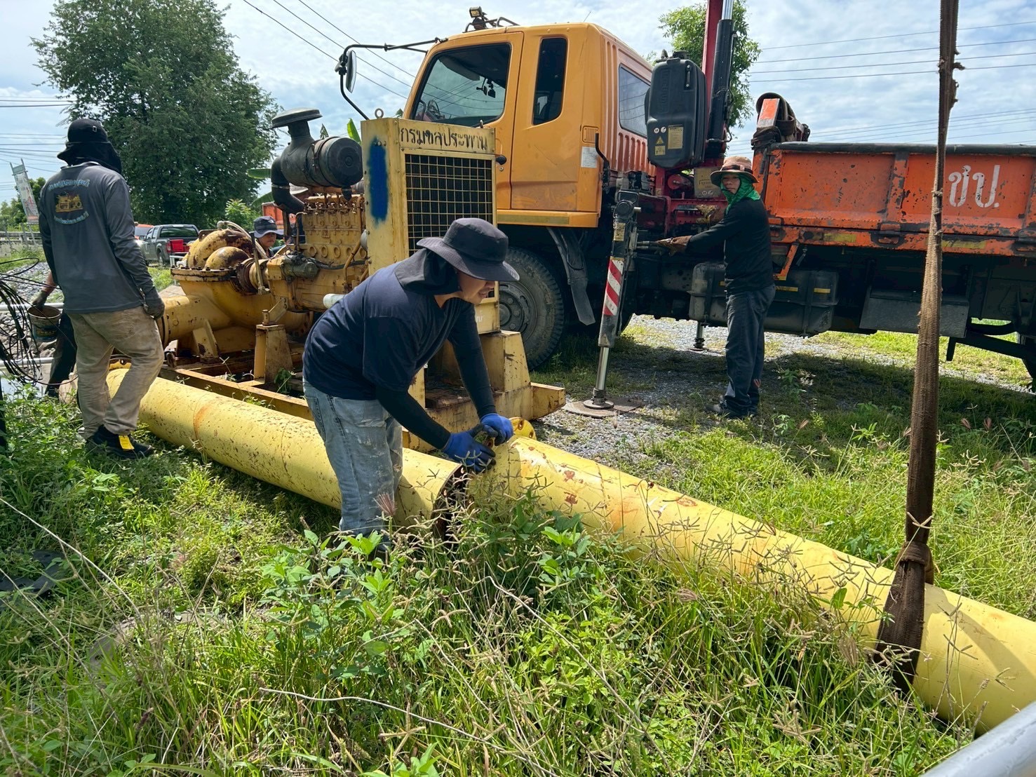 วันที่ 19 มิถุนายน 2568 เวลา 08.30 น. นายวุฒิชัย วงศ์เฉลียว ผู้อำนวยการส่วนเครื่องจักรกล สำนักงานชลประทานที่ 11 มอบหมายให้นายพิเชษฐ สว่างปาน หัวหน้าฝ่ายปฏิบัติการสูบน้ำ พร้อมด้วยเจ้าหน้าที่ส่วนเครื่องจักรกล เข้าดำเนินการติดตั้งเครื่องสูบน้ำเคลื่อนที่ ขับด้วยเครื่องยนต์ดีเซล ขนาด 12 นิ้ว บริเวณ ปตร.คลองลัดกลางทุ่ง ตำบลดอนแฝก อำเภอนครชัยศรี จังหวัดนครปฐม เขตพื้นที่โครงการส่งน้ำและบำรุงรักษาพระพิมล เพื่อเตรียมความพร้อมรับสถานการณ์ฤดูฝน ปี 2568