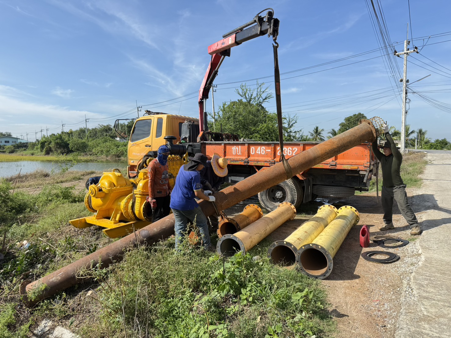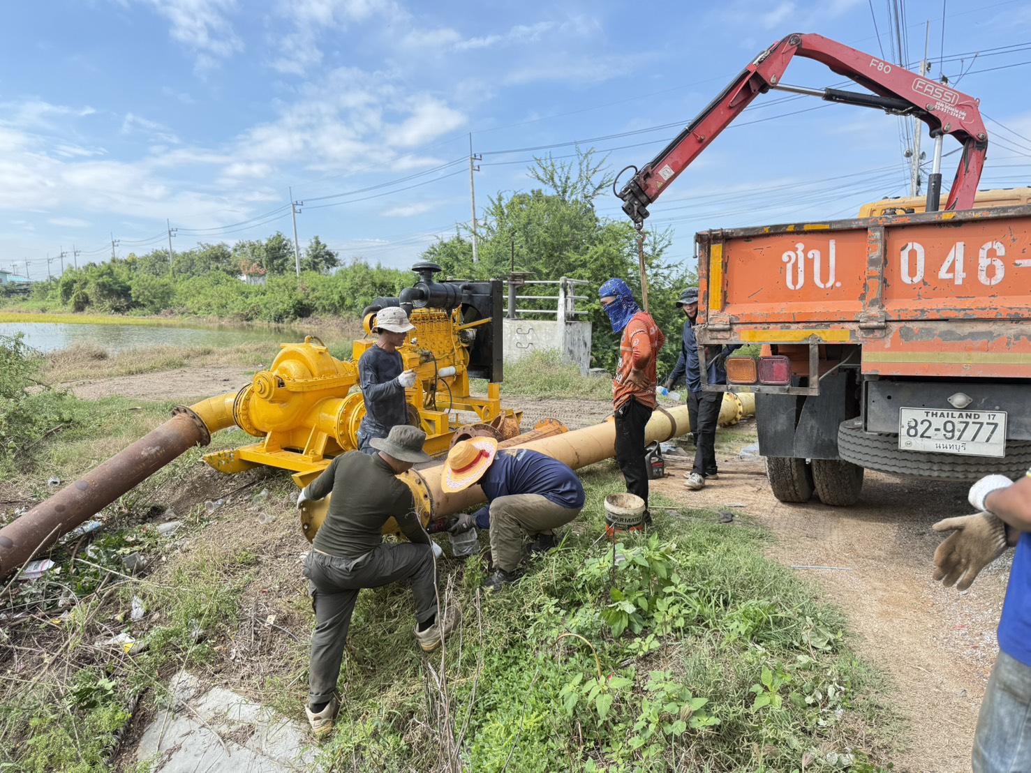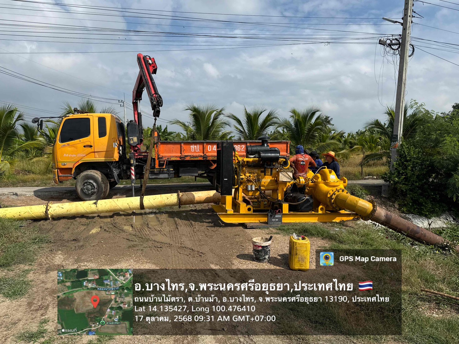 วันที่ 17 ตุลาคม 2568 เวลา 09.30 น. นายวุฒิชัย วงศ์เฉลียว ผู้อำนวยการส่วนเครื่องจักรกล สำนักงานชลประทานที่ 11 มอบหมายให้นายพิเชษฐ สว่างปาน หัวหน้าฝ่ายปฏิบัติการสูบน้ำ พร้อมด้วยเจ้าหน้าที่ส่วนเครื่องจักรกล ดำเนินการติดตั้งเครื่องสูบน้ำเคลื่อนที่ ขนาด 12 นิ้ว บริเวณ ทรบ.ลำรางตาปลีก ตำบลบ้านม้า อำเภอบางไทร จังหวัดพระนครศรีอยุธยา เขตพื้นที่โครงการส่งน้ำและบำรุงรักษาพระยาบรรลือ