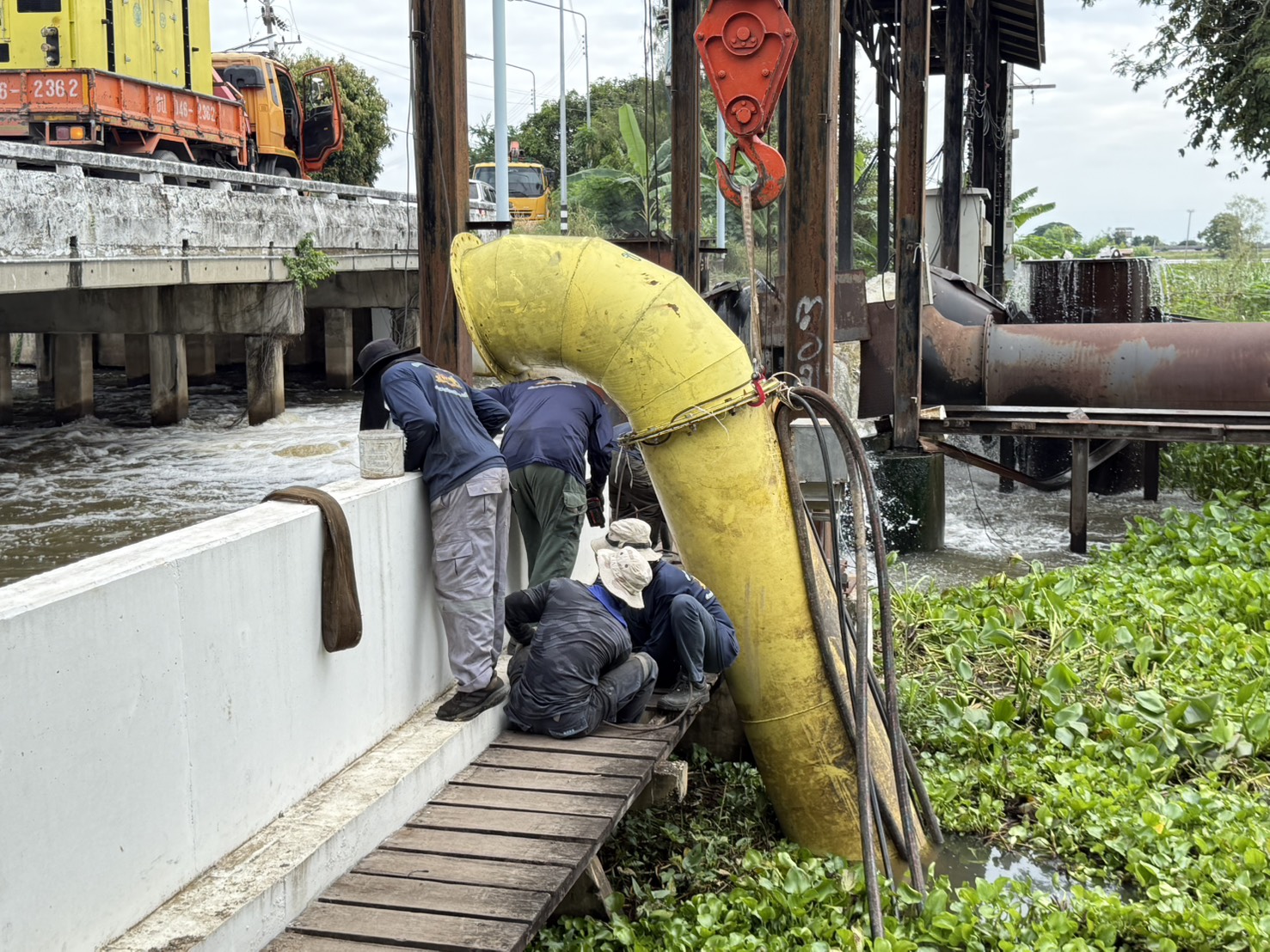 วันที่ 5 พฤศจิกายน 2568 เวลา 08.30 น. นายวุฒิชัย วงศ์เฉลียว ผู้อำนวยการส่วนเครื่องจักรกล สำนักงานชลประทานที่ 11 มอบหมายให้นายพิเชษฐ สว่างปาน หัวหน้าฝ่ายปฏิบัติการสูบน้ำ พร้อมด้วยเจ้าหน้าที่ส่วนเครื่องจักรกล ร่วมกับนายวีรภัทร เกิดม่วง หัวหน้าฝ่ายช่างกล โครงการส่งน้ำและบำรุงรักษาเจ้าเจ็ด-บางยี่หน ดำเนินการติดตั้งเครื่องสูบน้ำเคลื่อนที่แบบไฮดรอลิก ขนาด 24 นิ้ว บริเวณ ปตร.ปลายคลองไผ่พระ ตำบลบ้านเกาะ อำเภอบางไทร จังหวัดพระนครศรีอยุธยา เขตพื้นที่โครงการส่งน้ำและบำรุงรักษาเจ้าเจ็ด-บางยี่หน