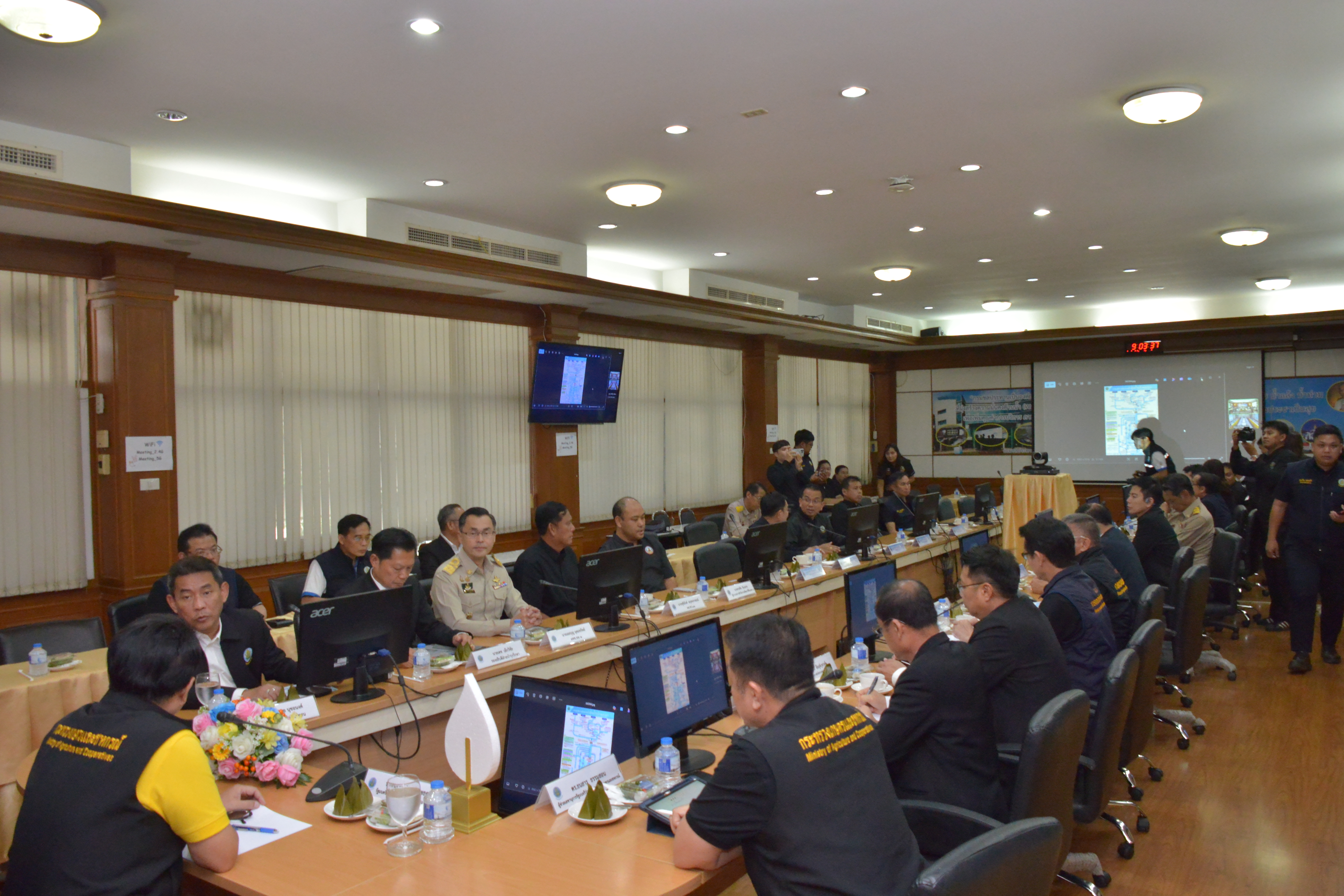 วันที่ 10 พฤศจิกายน 2568 นายนเรศ ธำรงค์ทิพยคุณ รัฐมนตรีช่วยว่าการกระทรวงเกษตรและสหกรณ์ เป็นประธานการประชุม ติดตามสถานการณ์น้ำในลุ่มน้ำเจ้าพระยา และแนวทางบริหารจัดการน้ำ โดยมี นายสุริยพล นุชอนงค์ อธิบดีกรมชลประทาน นายเดช เล็กวิชัย นายองอาจ แสนอุบล ผู้อำนวยการสำนักงานชลประทานที่ 10 นายชุติมันต์ สกุลพราหมณ์ ผู้อำนวยการสำนักงานชลประทานที่ 11 นายสงกรานต์ ชะลอศรีทอง ผู้อำนวยการสำนักงานชลประทานที่ 12 นายเลอบุญ อุดมทรัพย์ ผู้เชี่ยวชาญด้านวิศวกรรมชลประทาน (ด้าน จัดสรรน้ำและบำรุงรักษา) พร้อมผู้เกี่ยวข้อง เข้าร่วมประชุมและรายงานสถานการณ์ในภาพรวม ณ ห้องประชุมสำนักงานชลประทานที่ 11 อำเภอปากเกร็ด จังหวัดนนทบุรี