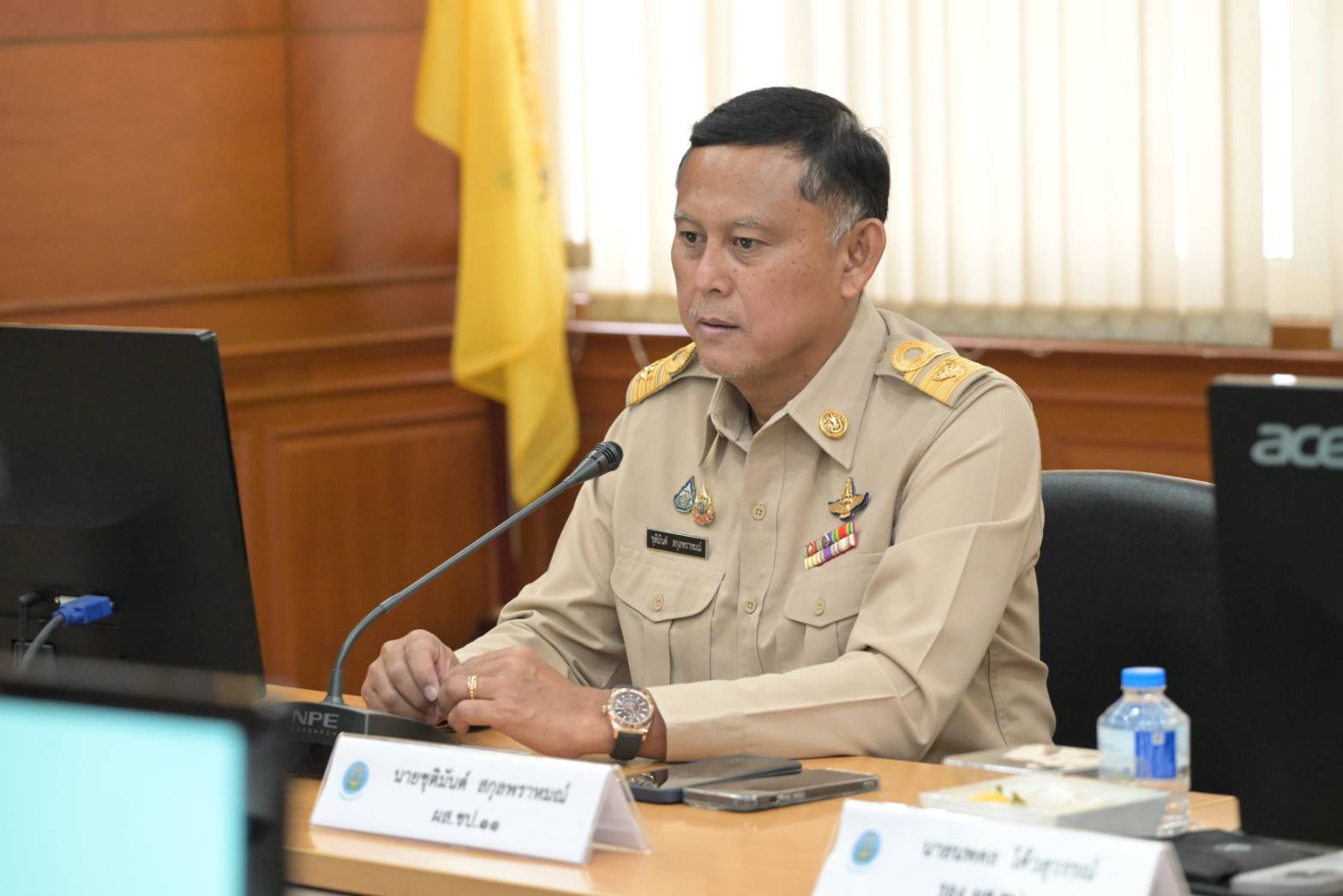 วันที่ 15 ธันวาคม 2568 นายเชษฐา โมสิกรัตน์ ผู้ว่าราชการจังหวัดนนทบุรี เป็นประธานการประชุมติดตามสถานการณ์น้ำ จังหวัดนนทบุรี พร้อมด้วย นายชุติมันต์ สกุลพราหมณ์ ผู้อำนวยการสำนักงานชลประทานที่ 11 ดร.นพดล โค้วสุวรรณ์ รองผู้อำนวยการสำนักงานชลประทานที่ 11 นายพงศ์ศักดิ์ อรุณวิจิตรสกุล ที่ปรึกษาด้านบริหารจัดการน้ำ สำนักงานชลประทานที่ 11 ผู้อำนวยการส่วน ผู้อำนวยการโครงการ หัวหน้าฝ่าย และผู้เกี่ยวข้อง ร่วมประชุม ติดตามสถานการณ์น้ำ และเตรียมความพร้อมรับมือกับสถานการณ์น้ำขึ้นจากน้ำทะเลหนุนในพื้นที่ริมแม่น้ำเจ้าพระยาเพื่อบรรเทาความเดือดร้อนและป้องกันความเสียหายแก่ประชาชน ณ ห้องประชุมสำนักงานชลประทานที่ 11 กรมชลประทานปากเกร็ด จังหวัดนนทบุรี
