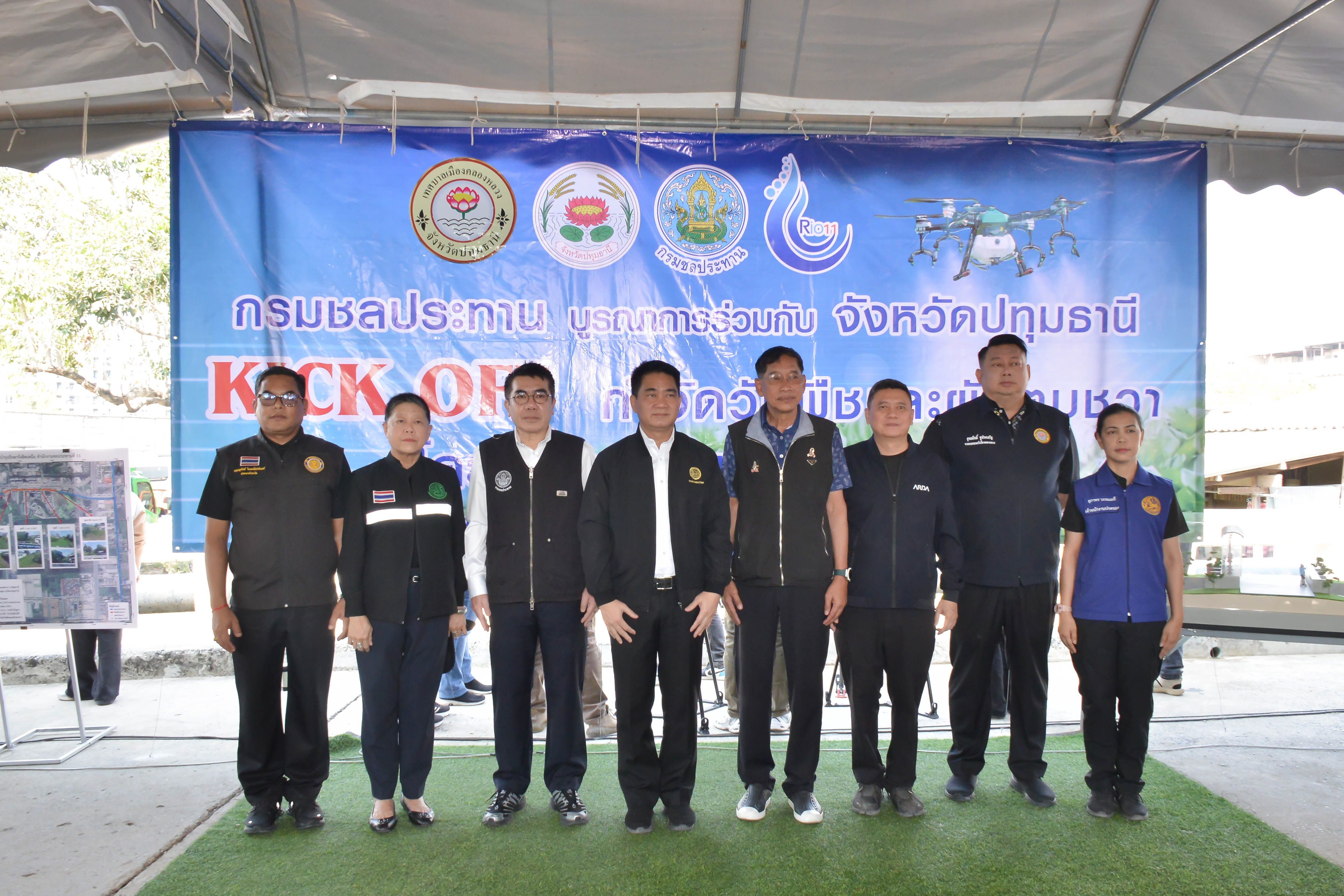 วันที่ 4 กุมภาพันธ์ 2569 กรมชลประทาน จับมือจังหวัดปทุมธานี เดินหน้าขับเคลื่อนการแก้ไขปัญหาผักตบชวาในแหล่งน้ำอย่างเป็นระบบ นำนวัตกรรมสารผสมสูตร สวพ.62 (ชป.1) มาเป็นเครื่องมือสำคัญในการจัดการผักตบชวา ควบคู่ไปกับการมีส่วนร่วมของหน่วยงานทุกภาคส่วน และได้นำร่องโครงการฯ ในพื้นที่คลองเชียงราก–บางขัน ตำบลคลองหนึ่ง อำเภอคลองหลวง จังหวัดปทุมธานี ในเขตพื้นที่โครงการส่งน้ำและบำรุงรักษารังสิตเหนือ มุ่งหวังสู่การฟื้นฟูแหล่งน้ำอย่างยั่งยืน โดยมี นายดงพล รุจิธรรมรัช รองผู้ว่าราชการจังหวัดปทุมธานี พล.ต.ท.คำรณวิทย์ ธูปกระจ่าง นายกองค์การบริหารส่วนจังหวัดปทุมธานี นายยุทธศักดิ์ ชูประเสริฐ นายกเทศมนตรีเมืองคลองหลวง นายสิทธิพร พฤฒิพิบูลธรรม ผู้อำนวยการสำนักงานชลประทานที่ 11 นายพงศ์ศักดิ์ อรุณวิจิตรสกุล ที่ปรึกษาด้านบริหารจัดการน้ำ สำนักงานชลประทานที่ 11 ผู้อำนวยการส่วน ผู้อำนวยการโครงการ หัวหน้าฝ่ายในสังกัด นายณัฐพล วุฒิจันทร์ ผู้อำนวยการสำนักวิจัยและพัฒนา และนายองอาจ แสนอุบล ผู้อำนวยการสำนักงานชลประทานที่ 10 พร้อมหน่วยงานที่เกี่ยวข้อง เข้าร่วมกิจกรรมดังกล่าว